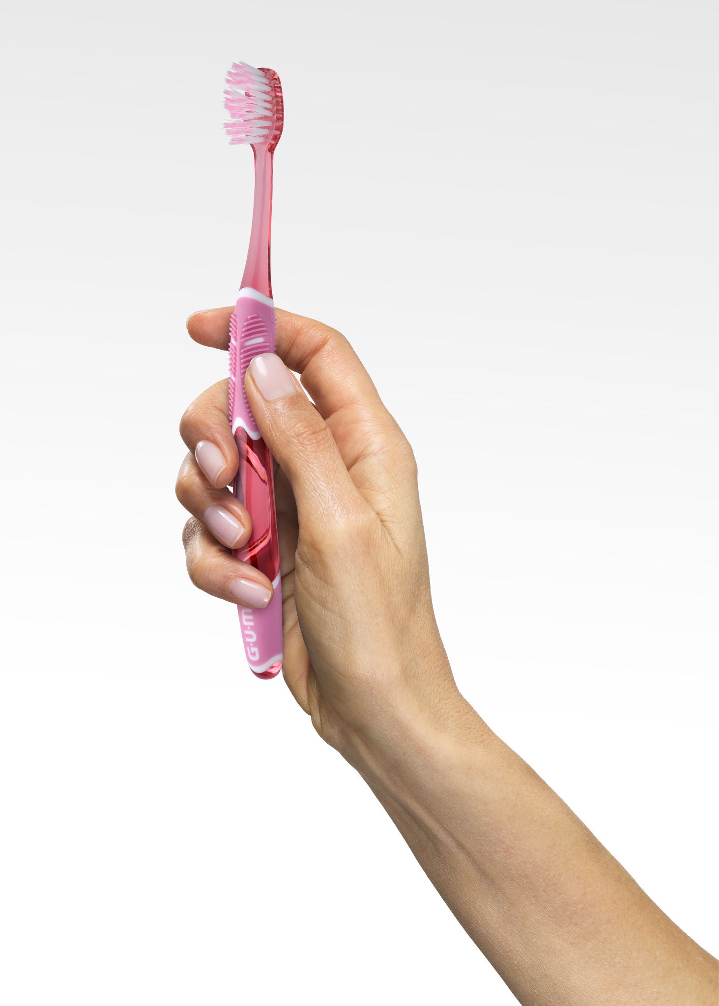 Lo spazzolino GUM PRO SENSITIVE è progettato per prendersi cura dei denti sensibili. Offre una pulizia profonda e ultra delicata, grazie a setole morbide multi-livello con punte ultra sottili, in grado di raggiungere in profondità sotto il margine gengivale e detergere anche le zone più sensibili.