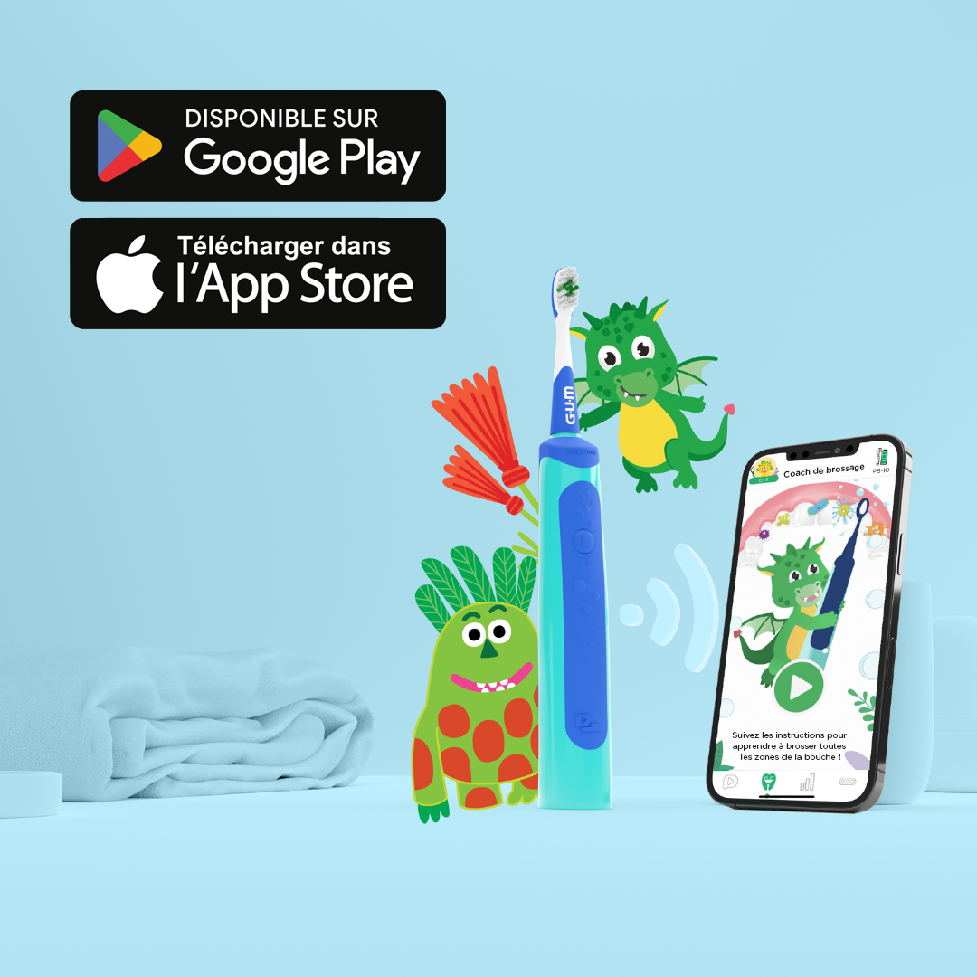 Connectez-vous simplement avec l’application GUM Playbrush. Compatible avec Android et iOS.