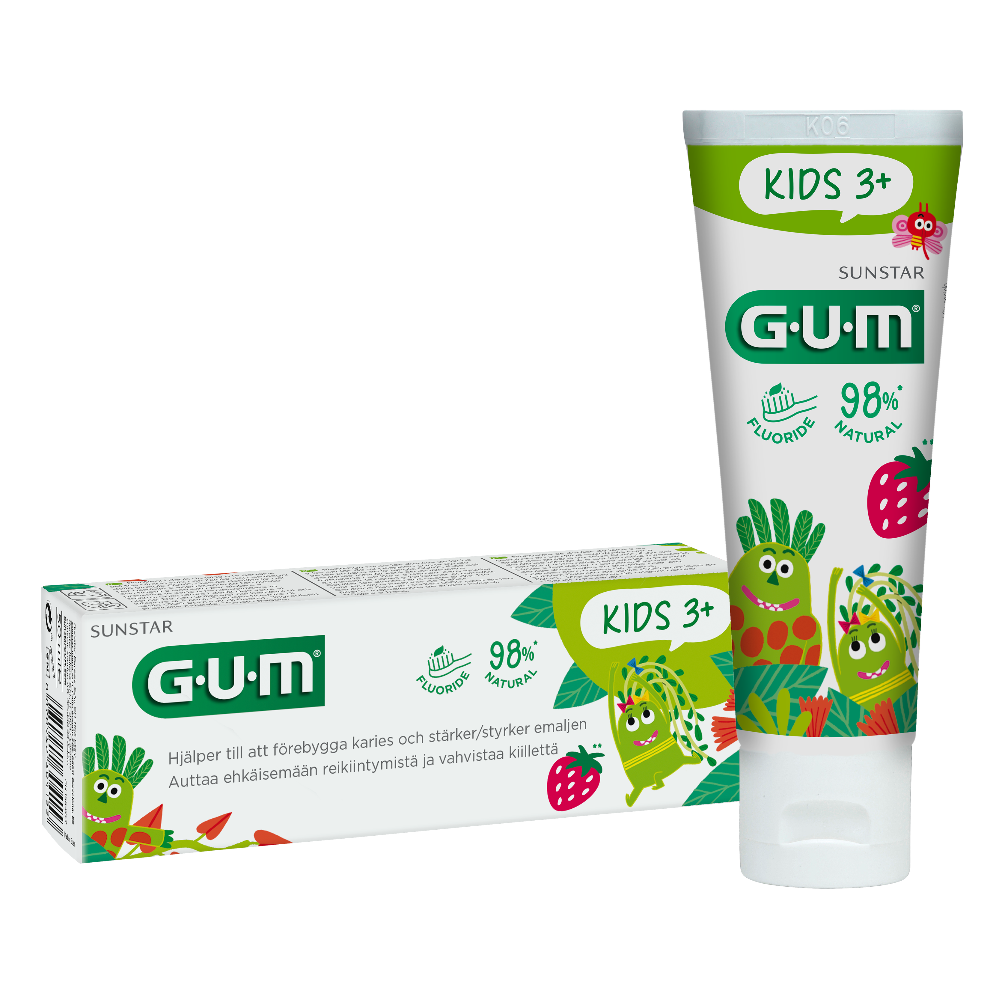 Fluor är viktigt att använda, även på barn. Det stärker och skyddar tänderna så att de blir mer motståndskraftiga mot karies och andra bakterier. Men barn ska inte ha lika stora mängder fluor som vi vuxna. En vuxentandkräm innehåller generellt sett 1450 ppm fluor, vilket är för högt värde för barns tänder. GUM® KIDS Tandkräm är ett exempel på en bra barntandkräm för barn på 2–6 år som har en minskad koncentration fluor. I vårt sortiment finner du barntandkräm för varje ålder. Här hittar du alla våra produkter för barn!