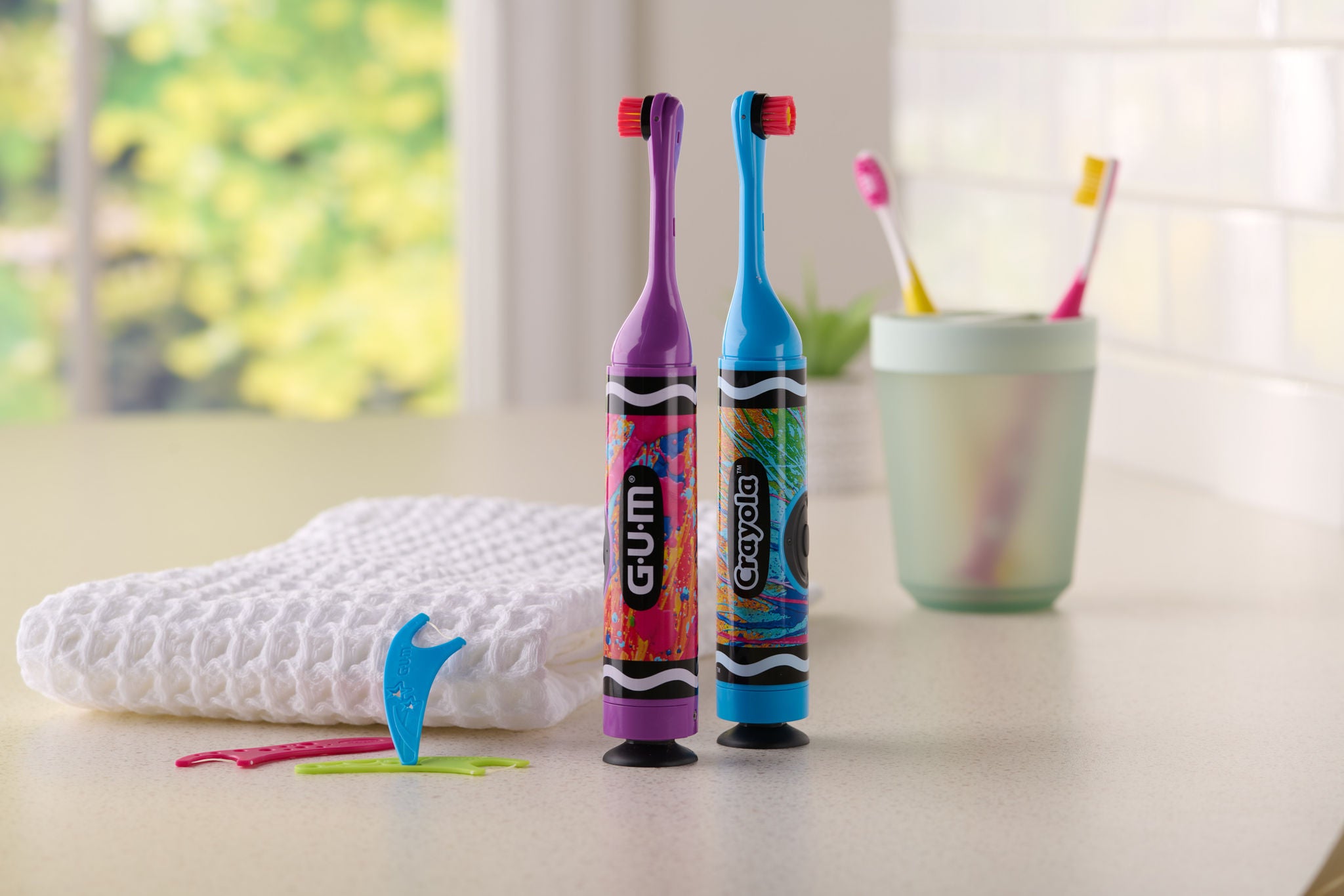 - Make brushing fun and effective. Help your child brush for 2 minutes with our flashing GUM® Crayola™ Kids' Timer Light Toothbrush. This creates a fun atmosphere conducive to effective brushing with an appropriate duration of 2 minutes.